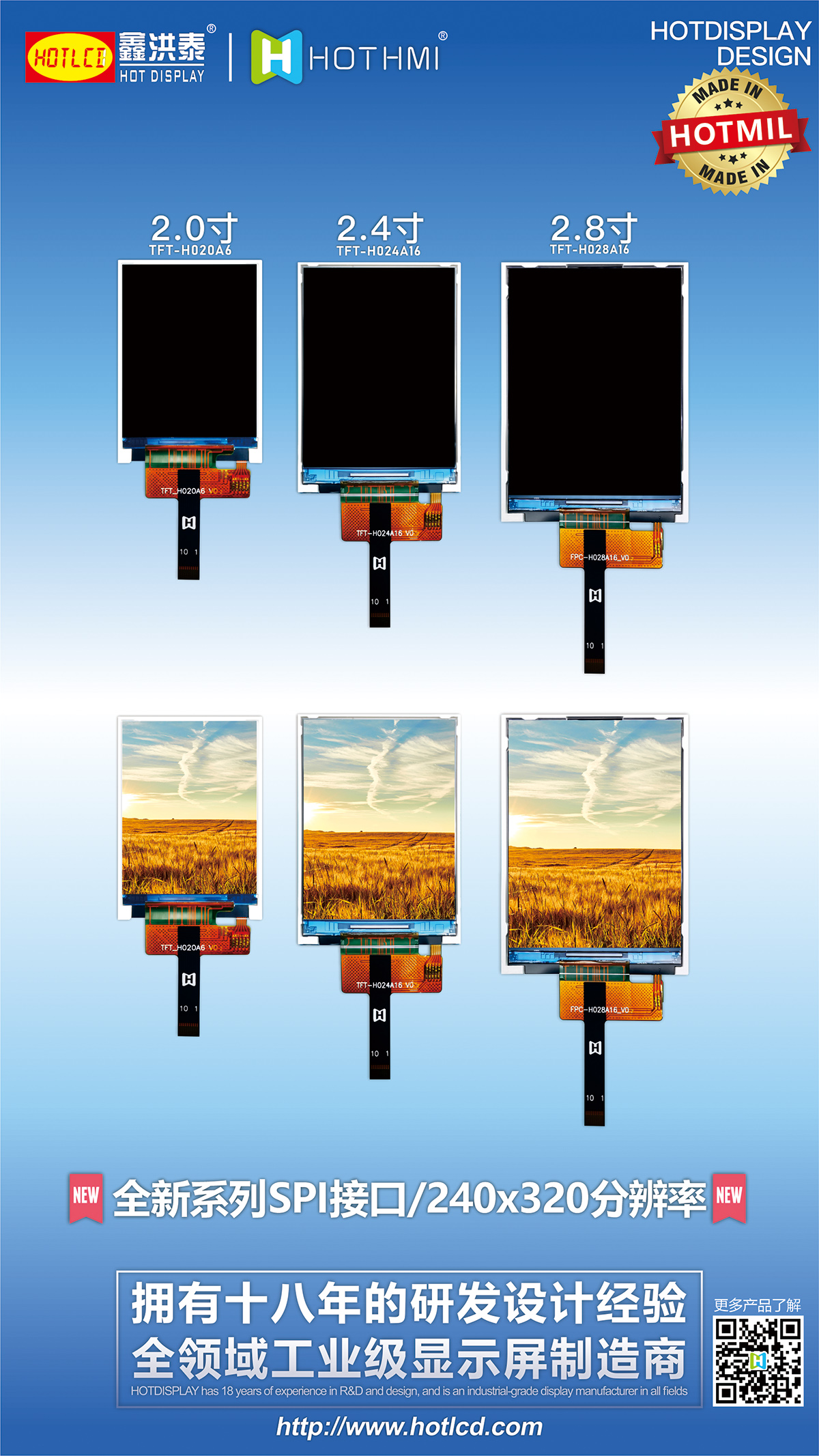 HOTLCD創(chuàng)立22年來,已開發(fā)出超過2000款標(biāo)準和非標(biāo)準液晶顯示屏及模組,廣泛應(yīng)用于人工智能、5G通訊、無人機、物聯(lián)網(wǎng)、車聯(lián)網(wǎng)、智能家居、智能穿戴、智慧交通、儀器儀表、醫(yī)療設(shè)備、工控設(shè)備、電力設(shè)備、勘探設(shè)備、航空航天、軍事裝備等諸多先進領(lǐng)域。